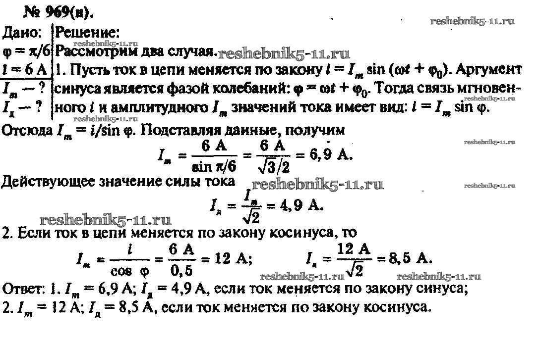 Готовая домашняя работа с ответами по Физике за 10, 11 класс Рымкевич Задачник УМК Дрофа 2013 ФГОС - Задачи 969