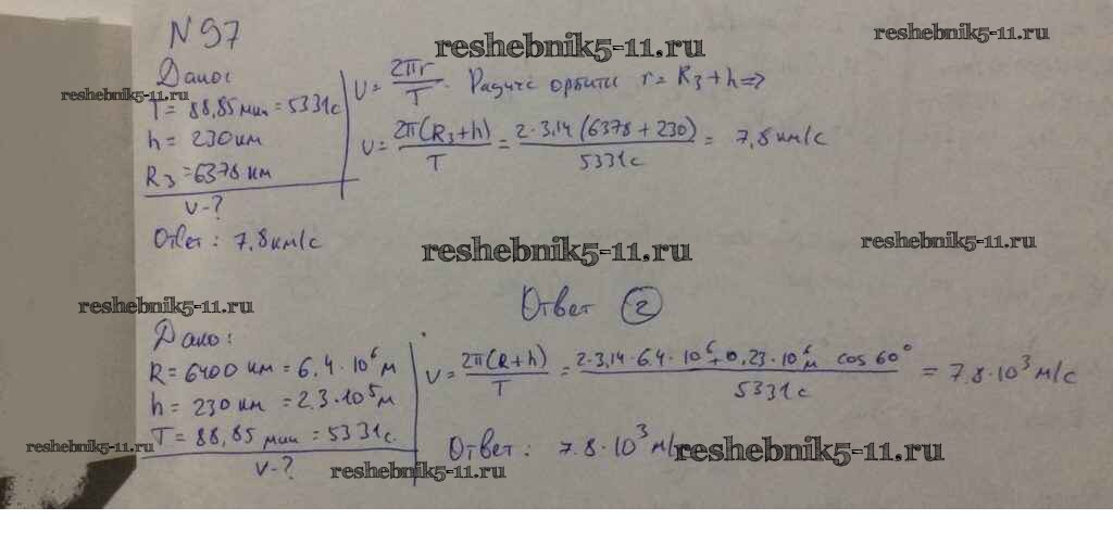 Готовая домашняя работа с ответами по Физике за 10, 11 класс Рымкевич Задачник УМК Дрофа 2013 ФГОС - Задачи 97