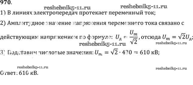 Готовая домашняя работа с ответами по Физике за 10, 11 класс Рымкевич Задачник УМК Дрофа 2013 ФГОС - Задачи 970