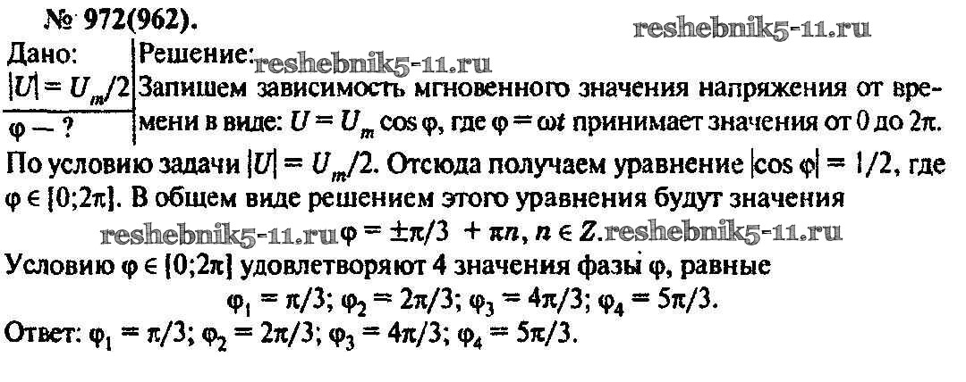 Физика за 10-11 класс Рымкевич Задачник УМК Дрофа задача 972