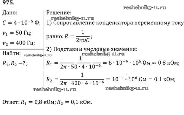 Готовая домашняя работа с ответами по Физике за 10, 11 класс Рымкевич Задачник УМК Дрофа 2013 ФГОС - Задачи 975