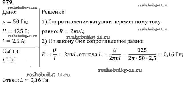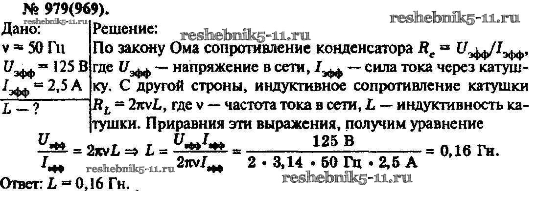 Готовая домашняя работа с ответами по Физике за 10, 11 класс Рымкевич Задачник УМК Дрофа 2013 ФГОС - Задачи 979