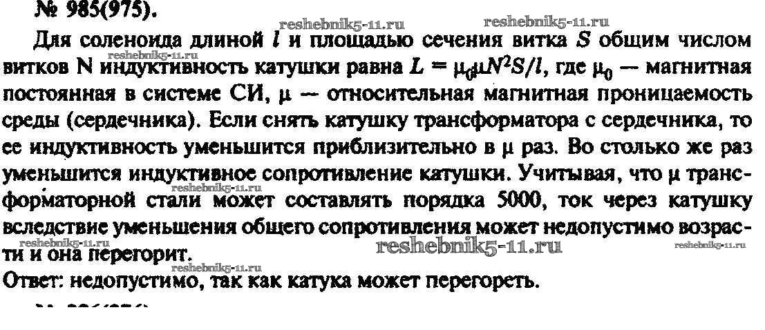 Физика за 10-11 класс Рымкевич Задачник УМК Дрофа задача 985