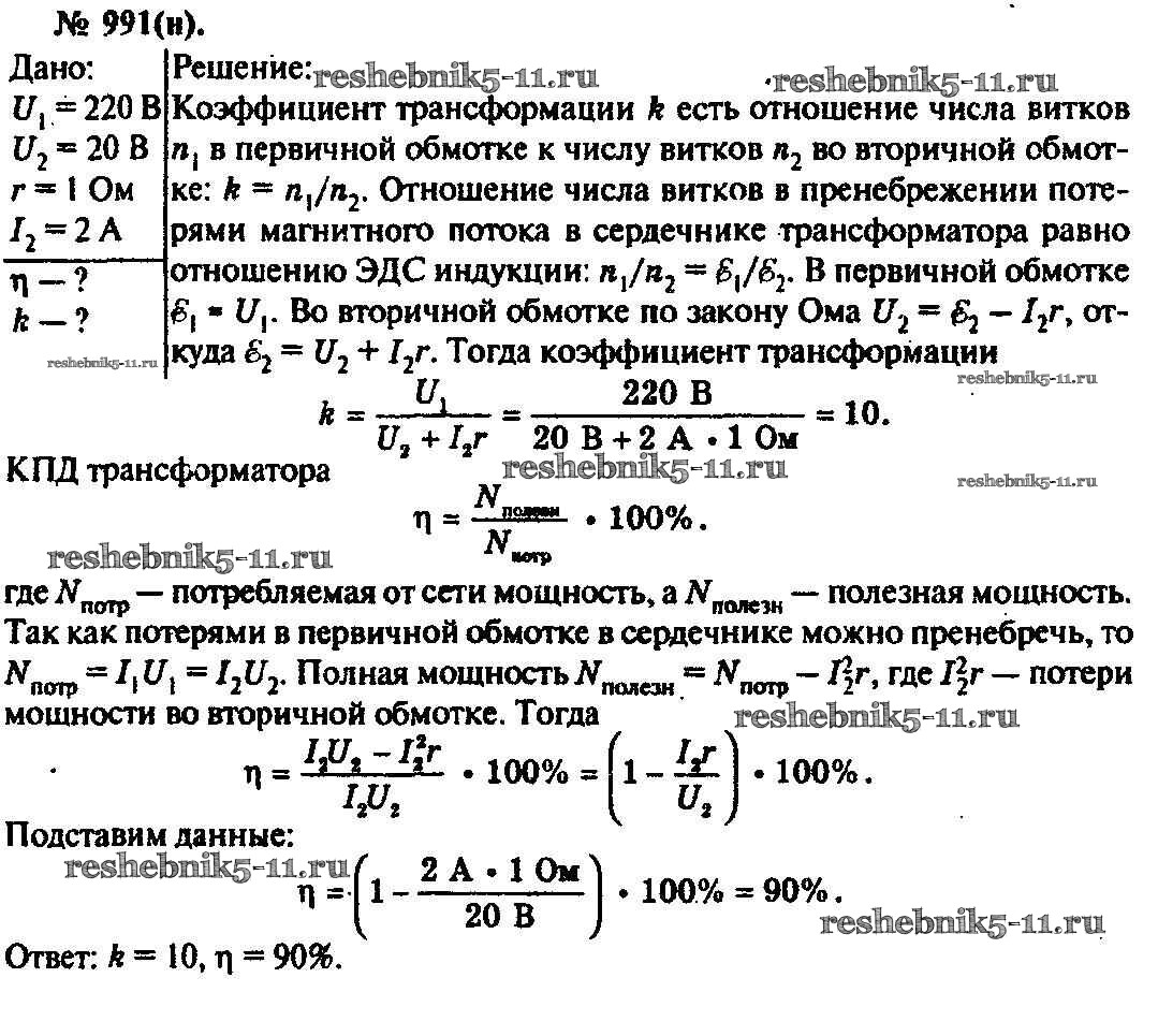 Готовая домашняя работа с ответами по Физике за 10, 11 класс Рымкевич Задачник УМК Дрофа 2013 ФГОС - Задачи 991