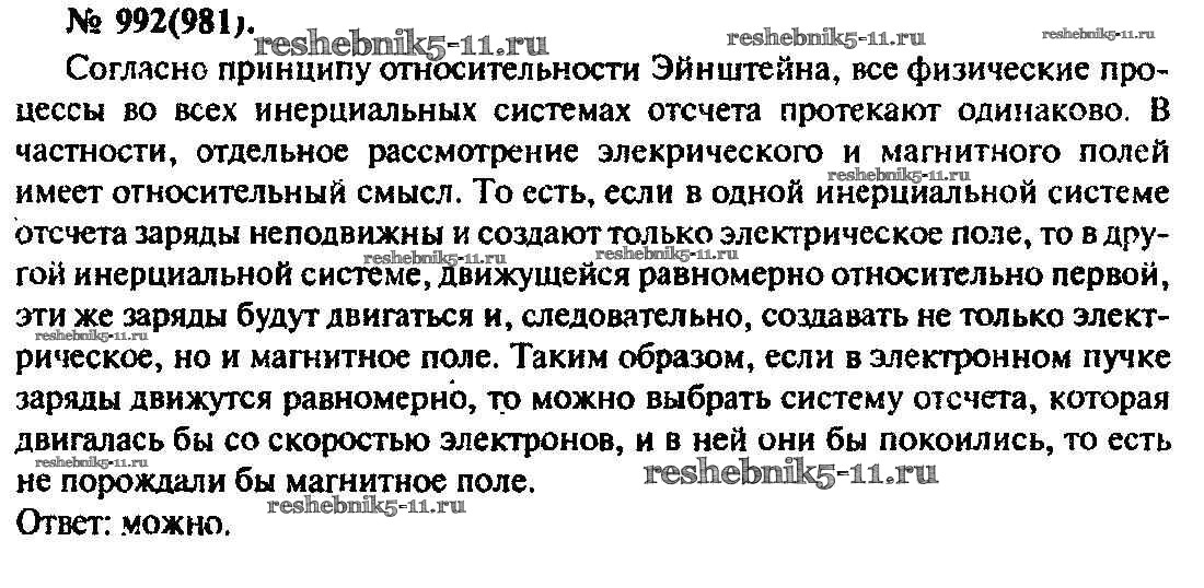 Готовая домашняя работа с ответами по Физике за 10, 11 класс Рымкевич Задачник УМК Дрофа 2013 ФГОС - Задачи 992