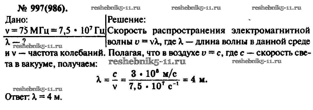 Физика за 10-11 класс Рымкевич Задачник УМК Дрофа задача 997