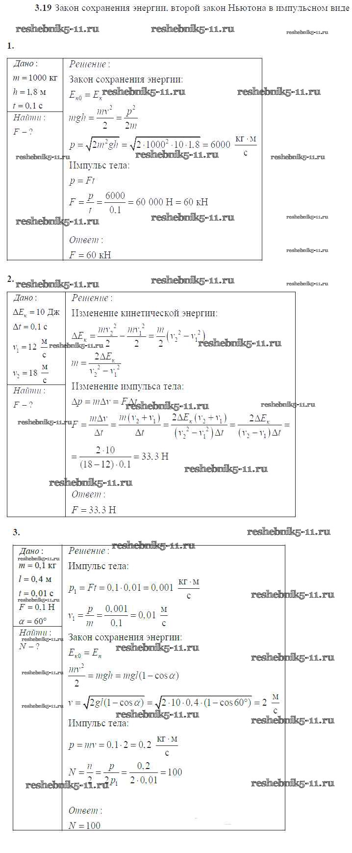 Готовая домашняя работа с ответами по Физике за 10, 11 класс Громцева Сборник задач и упражнений УМК Экзамен 2018 ФГОС - Параграф 3 19