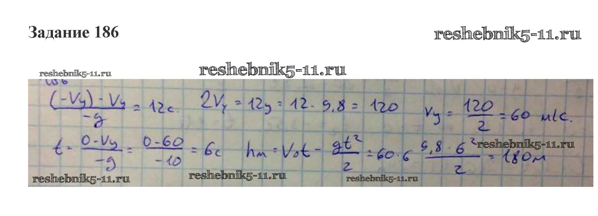 Готовая домашняя работа с ответами по Физике за 10, 11 класс Степанова Сборник задач Просвещение 2015 - Движение тела, брошенного под углом к горизонту 186