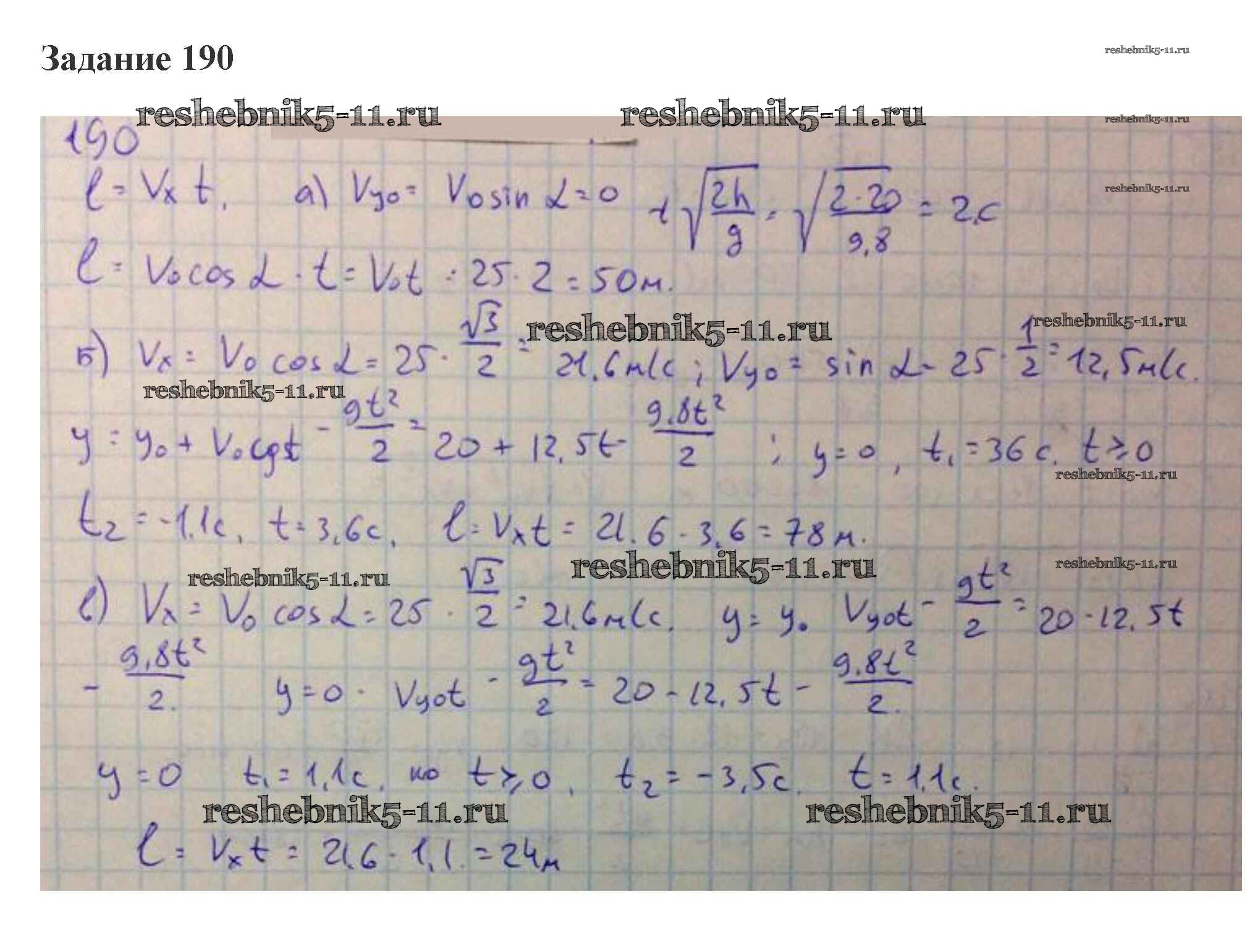 Готовая домашняя работа с ответами по Физике за 10, 11 класс Степанова Сборник задач Просвещение 2015 - Движение тела, брошенного под углом к горизонту 190