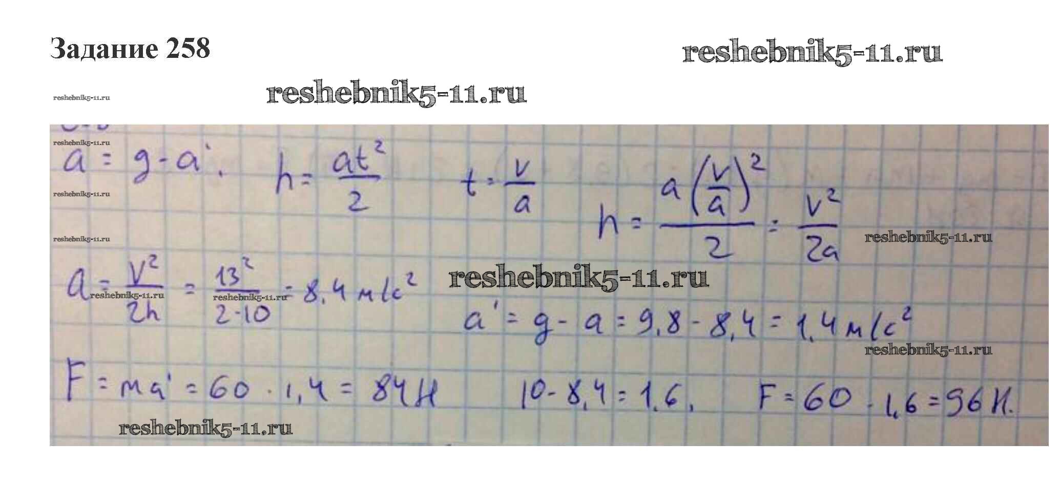 Готовая домашняя работа с ответами по Физике за 10, 11 класс Степанова Сборник задач Просвещение 2015 - 14. Движение тела в газе или жидкости 258