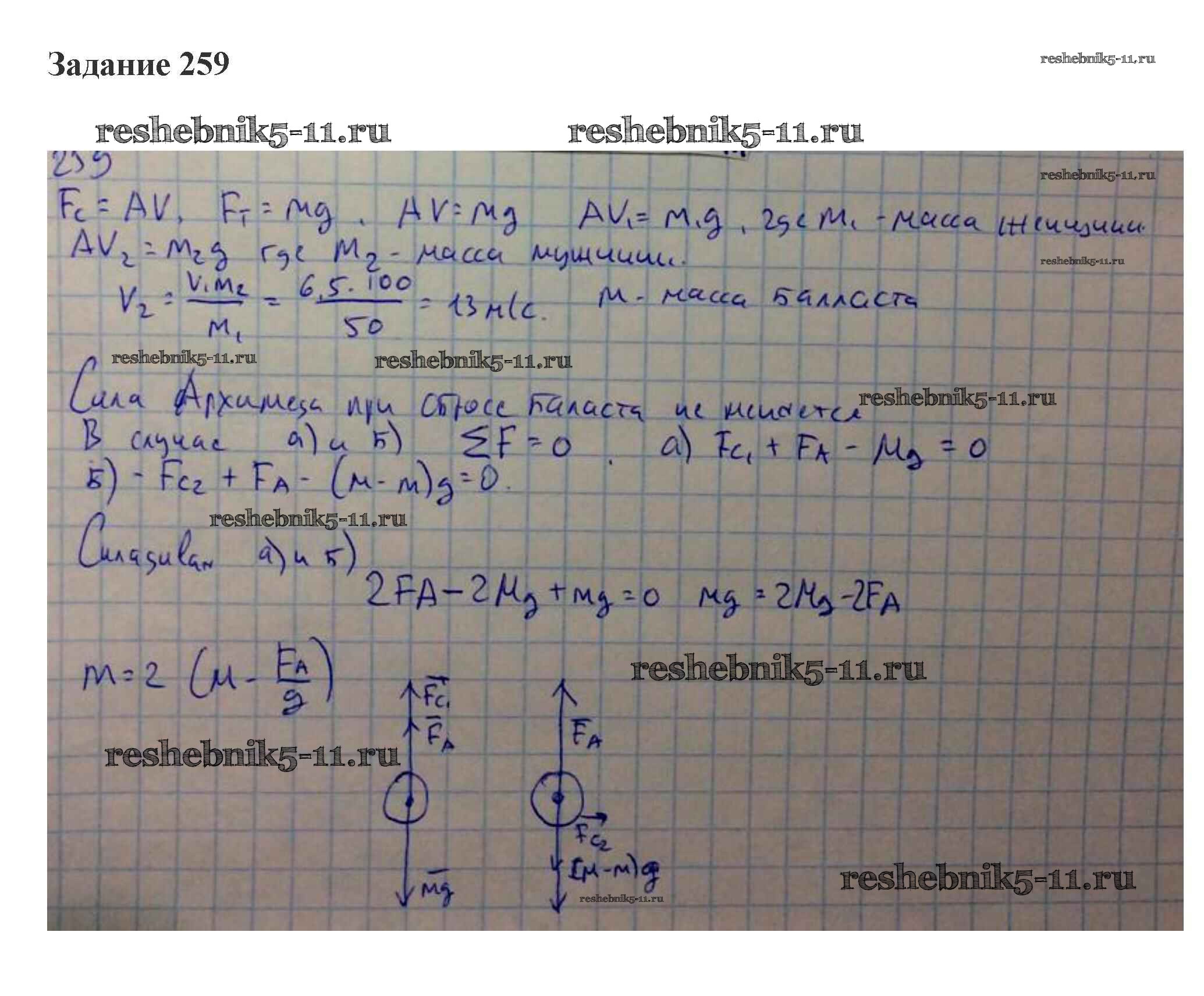 Готовая домашняя работа с ответами по Физике за 10, 11 класс Степанова Сборник задач Просвещение 2015 - 14. Движение тела в газе или жидкости 259