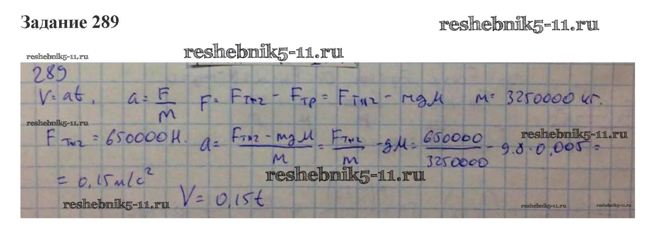 Решебник / основы динамики / 16. движение тел под действием нескольких сил. движение в горизонтальном и вертикальном направлении / 289