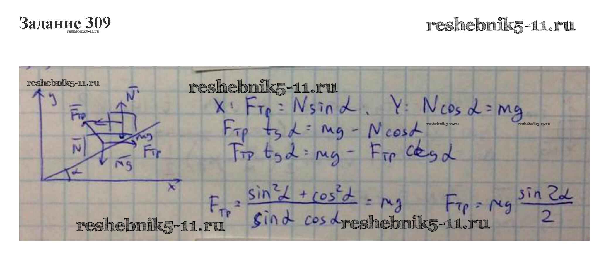 Решебник / основы динамики / 16. движение тел под действием нескольких сил. движение в горизонтальном и вертикальном направлении / 309