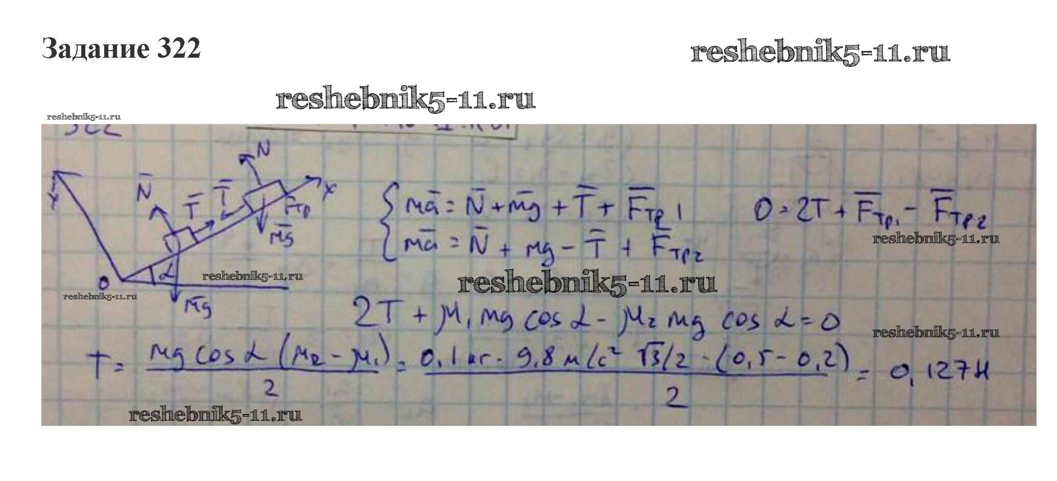 Готовая домашняя работа с ответами по Физике за 10, 11 класс Степанова Сборник задач Просвещение 2015 - Движение связанных тел 322