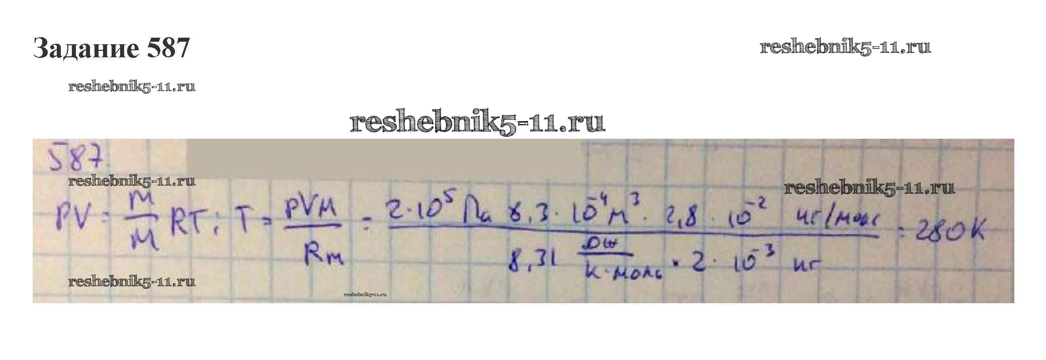 Готовая домашняя работа с ответами по Физике за 10, 11 класс Степанова Сборник задач Просвещение 2015 - 27. Уравнение состояния идеального газа 587