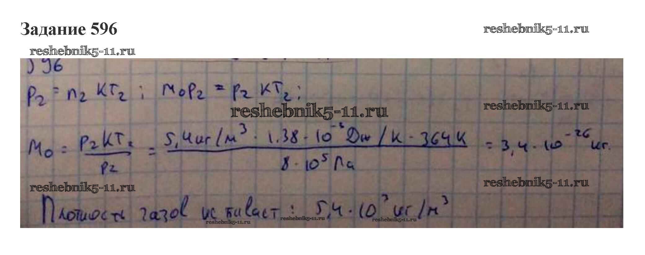Готовая домашняя работа с ответами по Физике за 10, 11 класс Степанова Сборник задач Просвещение 2015 - 27. Уравнение состояния идеального газа 596