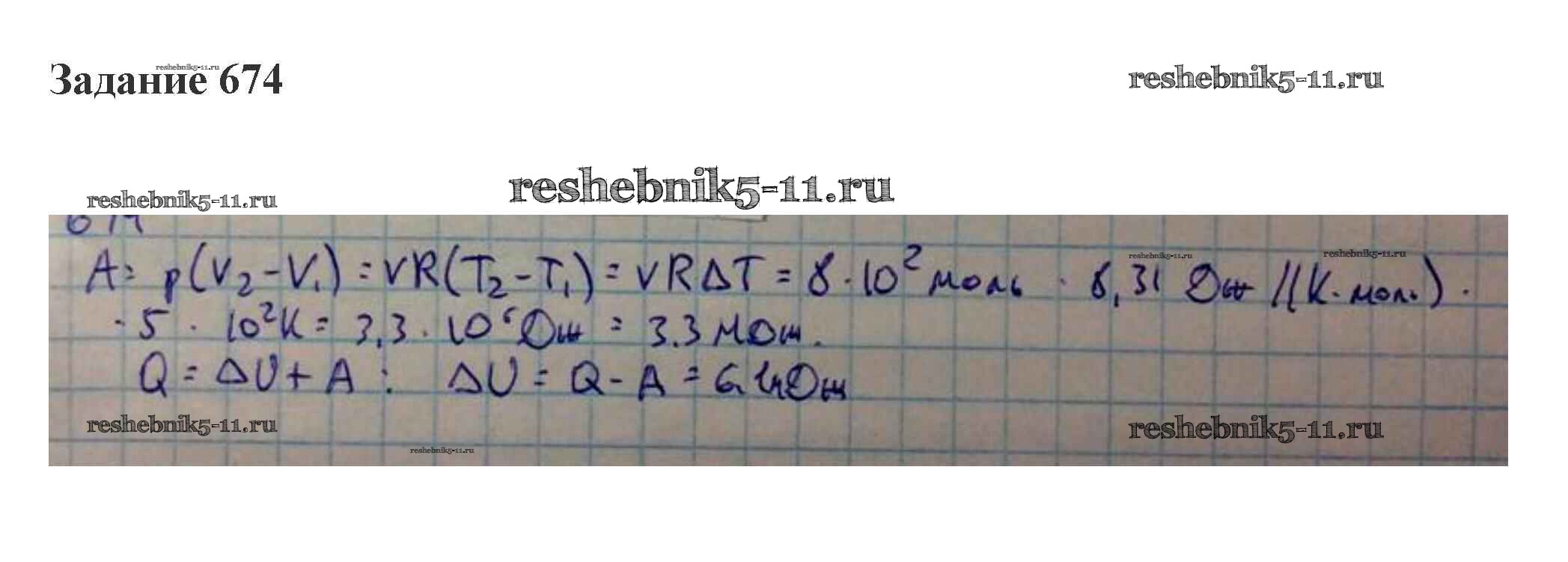 Готовая домашняя работа с ответами по Физике за 10, 11 класс Степанова Сборник задач Просвещение 2015 - 30. Первое начало термодинамики 674