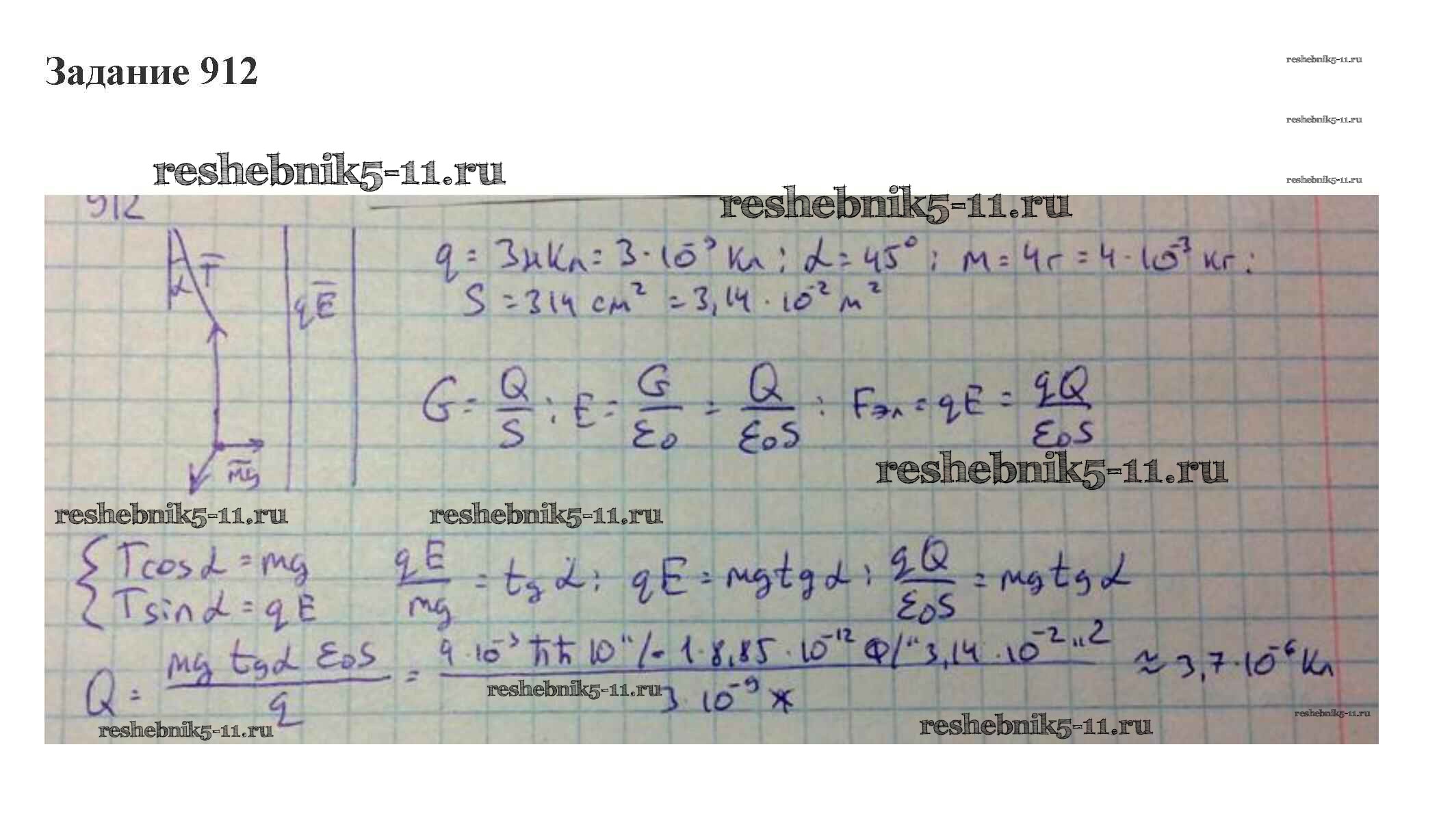 Решебник / электродинамика. электростатическое поле / 37. электрическое поле. напряженность поля. потенциал. разность потенциалов / 912