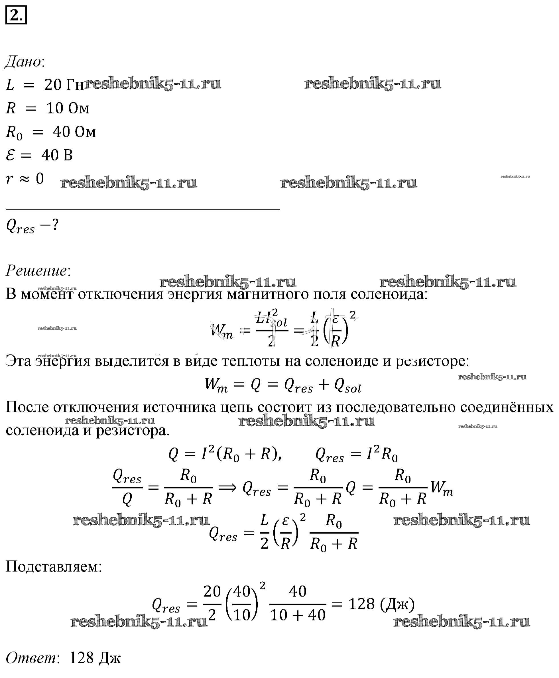 Готовая домашняя работа с ответами по Физике за 11 класс Мякишев, Буховцев, Чаругин, Николаева, Парфеньтьева Учебник Базовый уровень Просвещение 2018 ФГОС - Задачи для самостоятельного решения 2