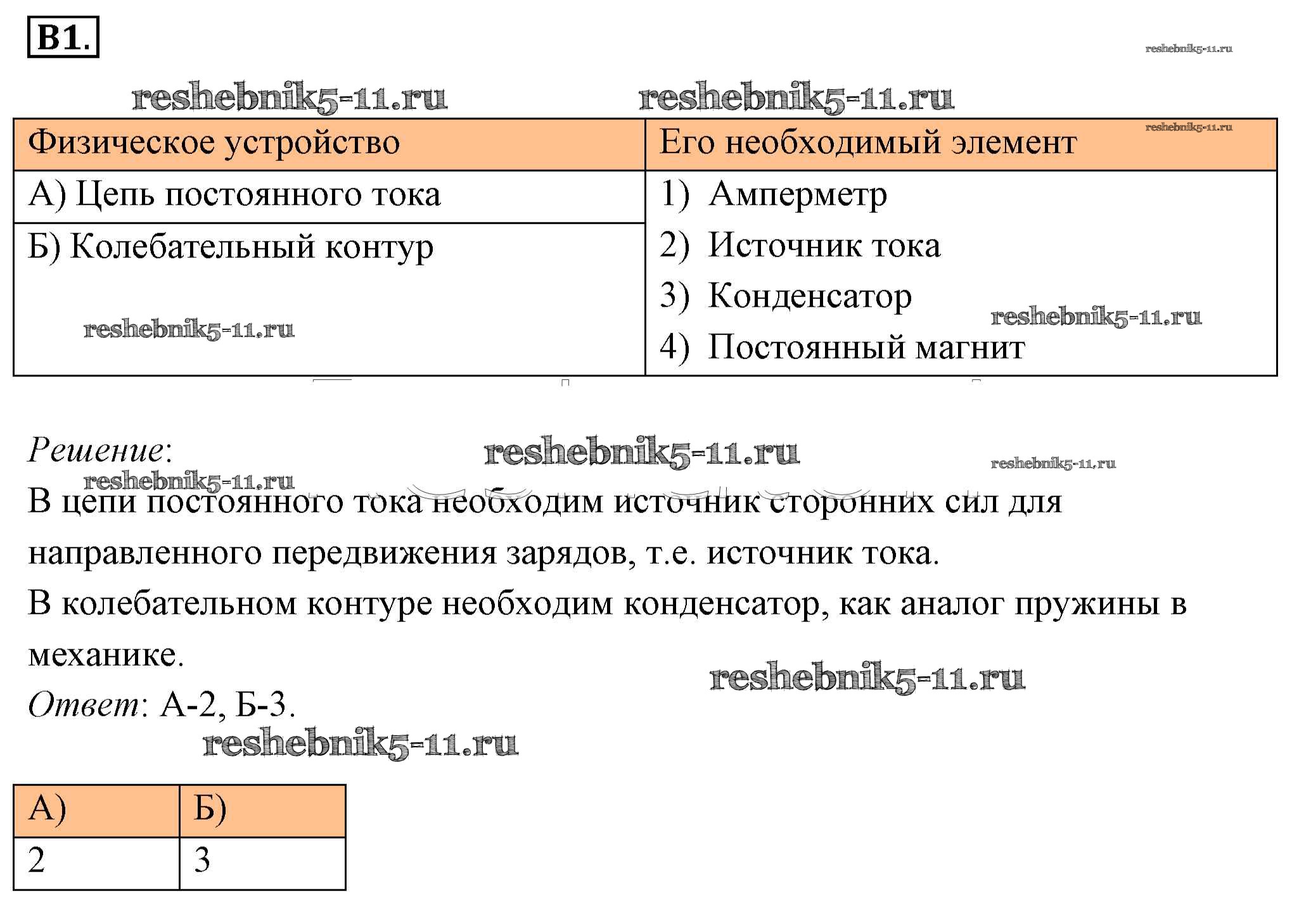 Готовая домашняя работа с ответами по Физике за 11 класс Мякишев, Буховцев, Чаругин, Николаева, Парфеньтьева Учебник Базовый уровень Просвещение 2018 ФГОС - Задания ЕГЭ 1