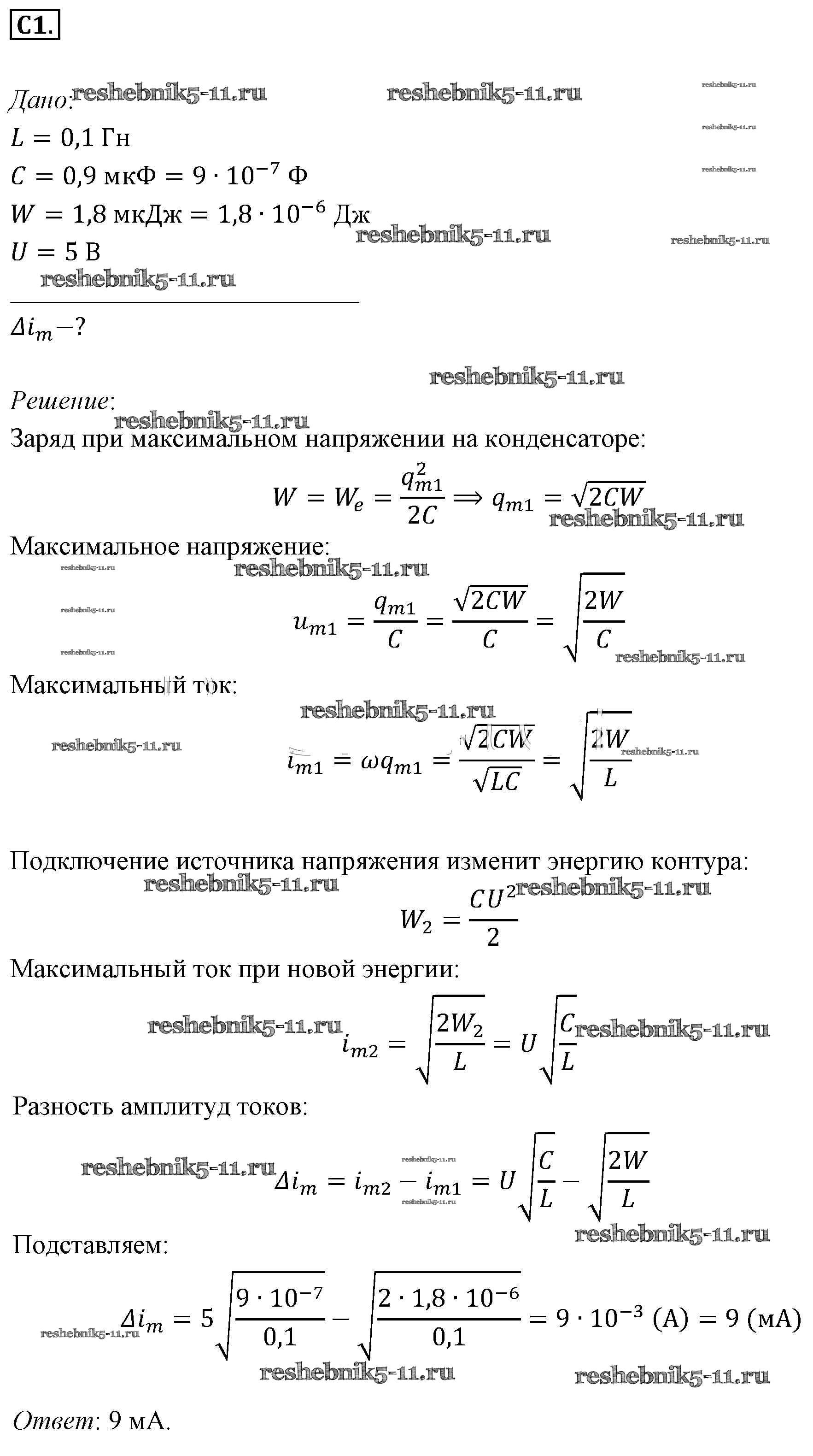 Готовая домашняя работа с ответами по Физике за 11 класс Мякишев, Буховцев, Чаругин, Николаева, Парфеньтьева Учебник Базовый уровень Просвещение 2018 ФГОС - Задания ЕГЭ 1