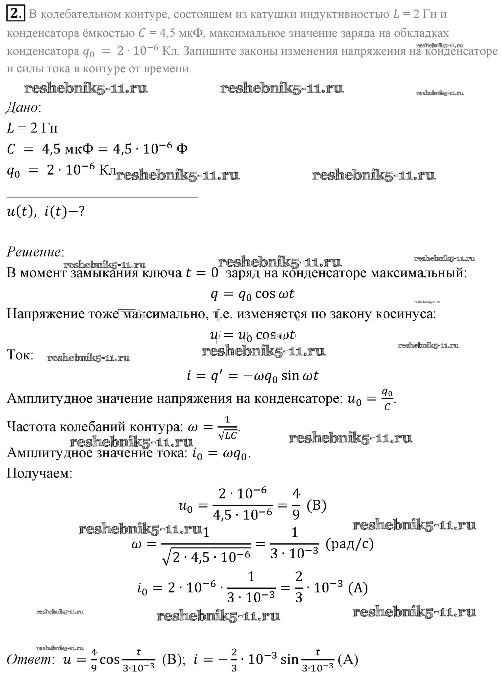 Готовая домашняя работа с ответами по Физике за 11 класс Мякишев, Буховцев, Чаругин, Николаева, Парфеньтьева Учебник Базовый уровень Просвещение 2018 ФГОС - Задачи для самостоятельного решения 2