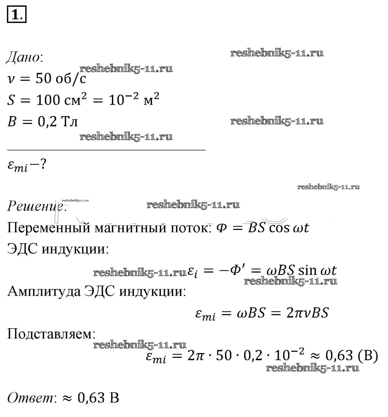 Готовая домашняя работа с ответами по Физике за 11 класс Мякишев, Буховцев, Чаругин, Николаева, Парфеньтьева Учебник Базовый уровень Просвещение 2018 ФГОС - Задачи для самостоятельного решения 1