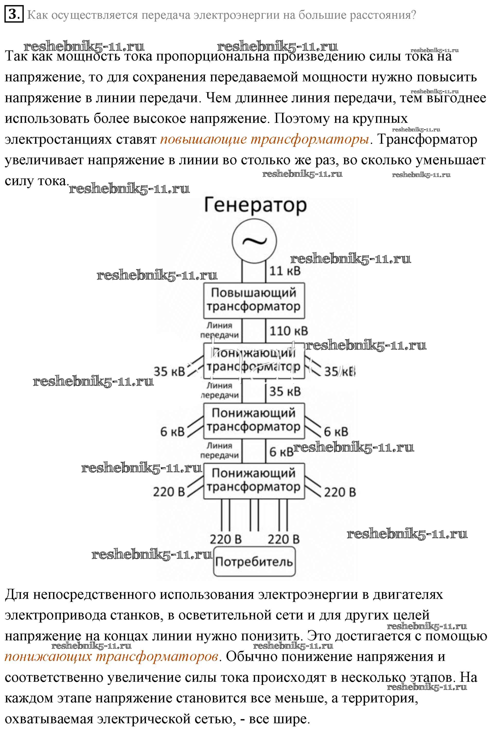 Готовая домашняя работа с ответами по Физике за 11 класс Мякишев, Буховцев, Чаругин, Николаева, Парфеньтьева Учебник Базовый уровень Просвещение 2018 ФГОС - §27. Производство, передача и потребление электрической энергии 3