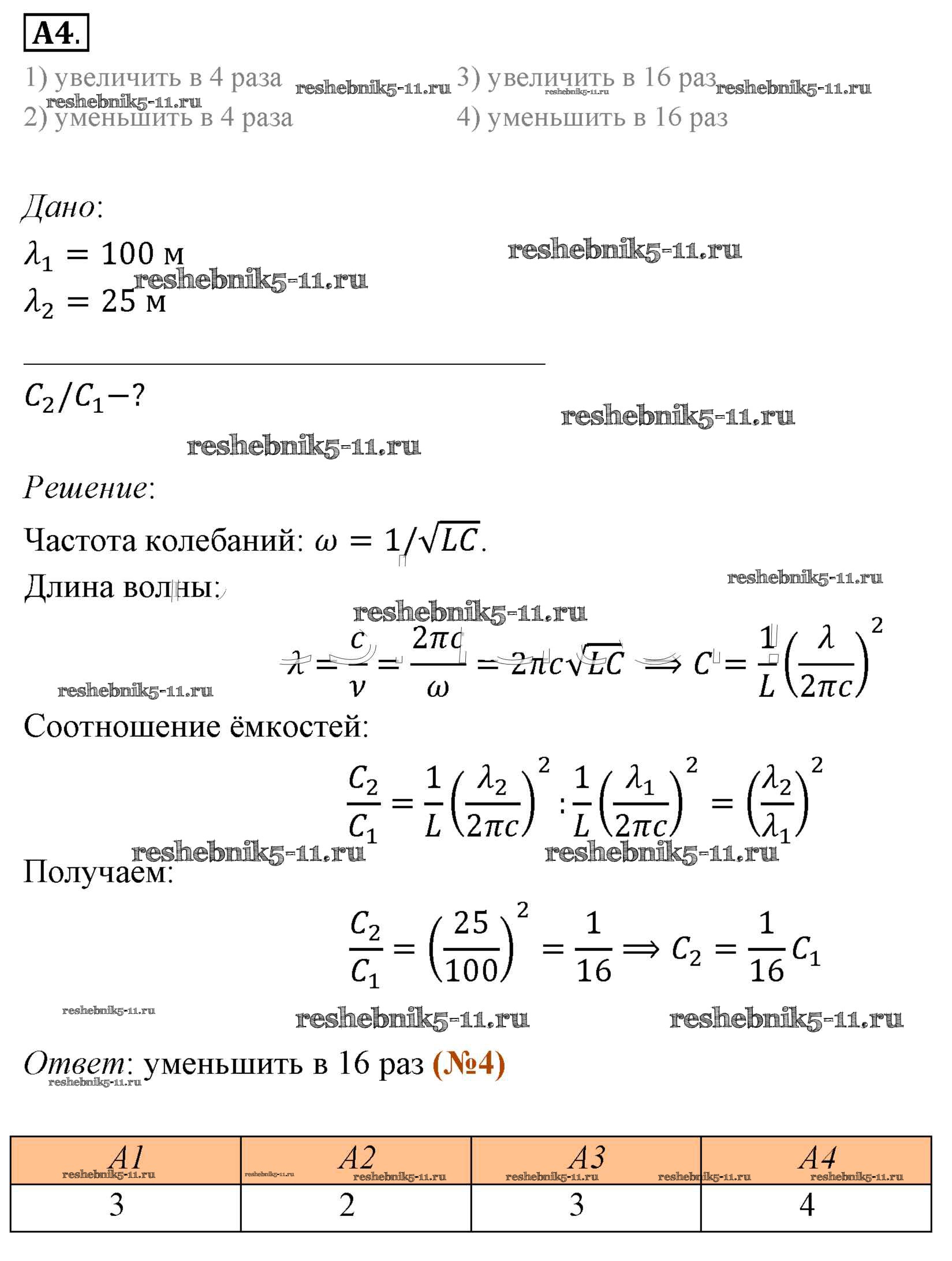 Готовая домашняя работа с ответами по Физике за 11 класс Мякишев, Буховцев, Чаругин, Николаева, Парфеньтьева Учебник Базовый уровень Просвещение 2018 ФГОС - Задания ЕГЭ 4