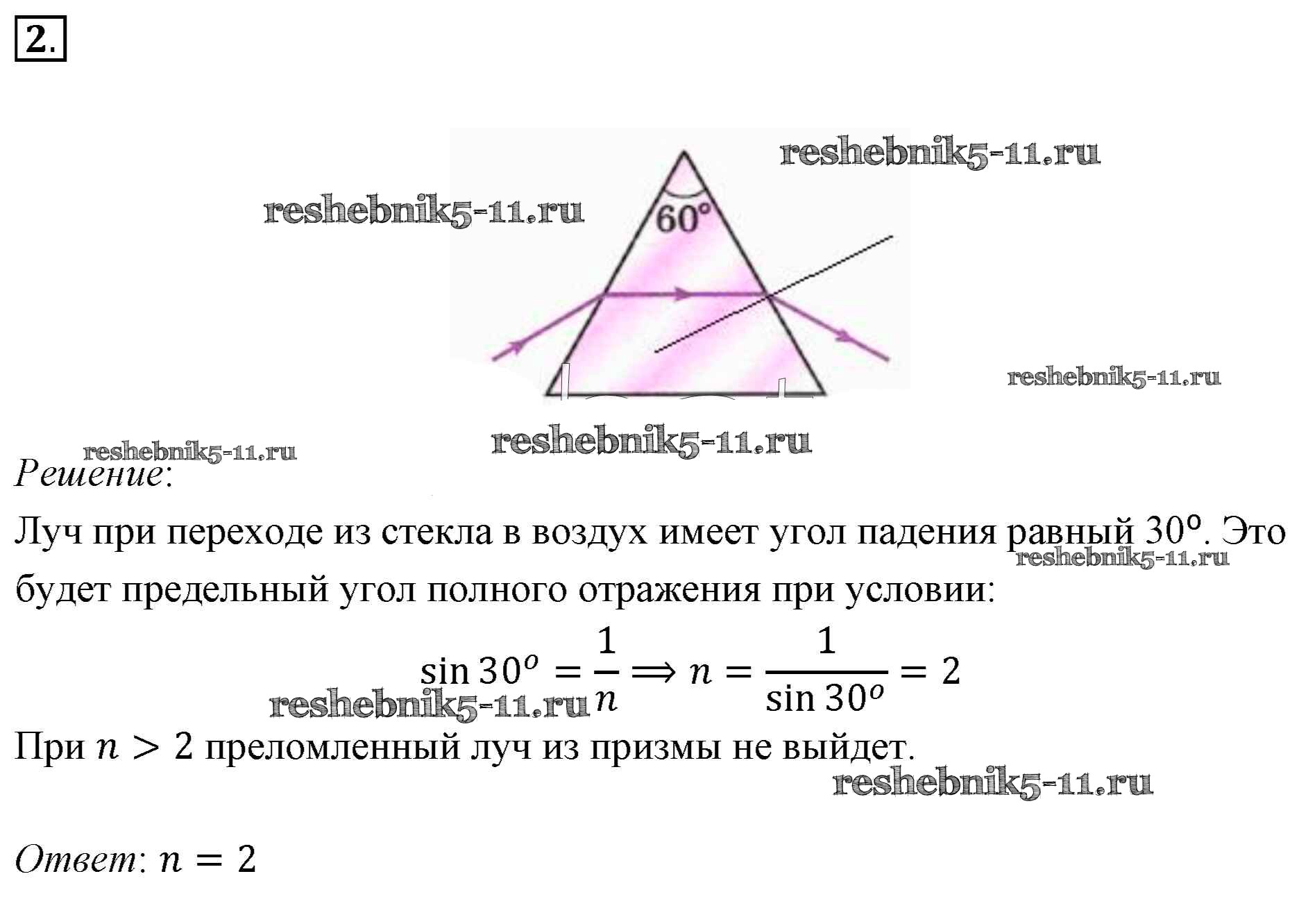 §49. Примеры решения задач по теме «Закон преломления света. Полное отражение света»