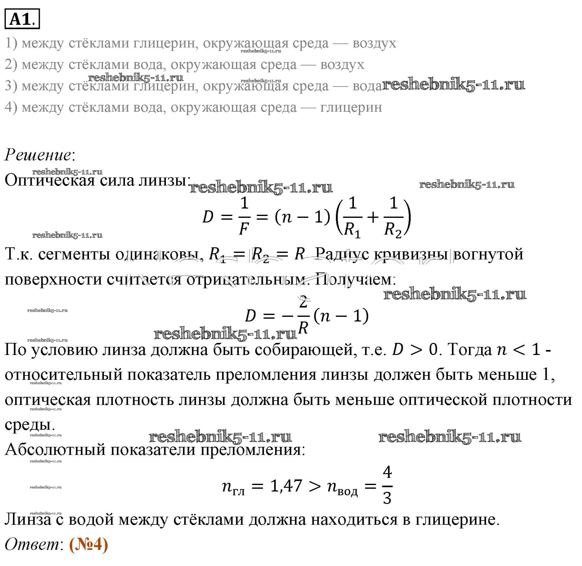 Готовая домашняя работа с ответами по Физике за 11 класс Мякишев, Буховцев, Чаругин, Николаева, Парфеньтьева Учебник Базовый уровень Просвещение 2018 ФГОС - Задания ЕГЭ 1