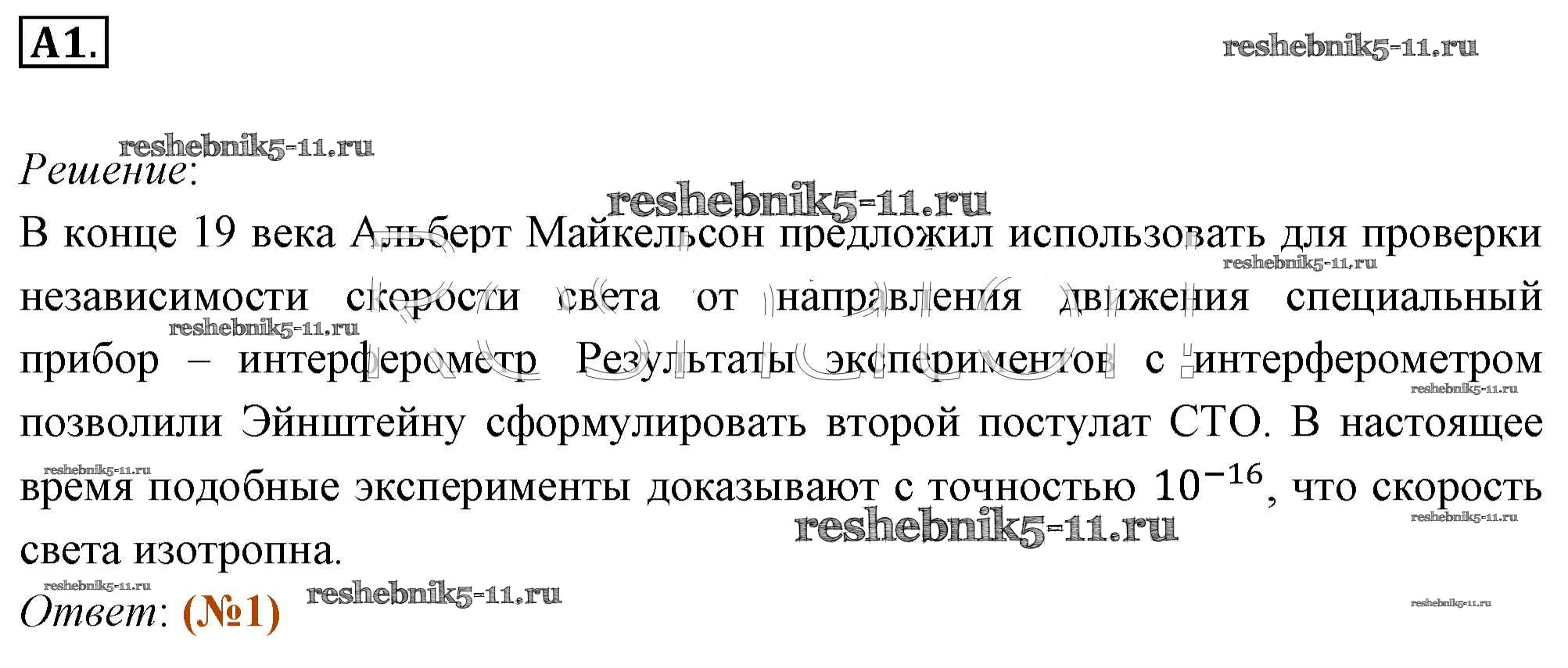 Готовая домашняя работа с ответами по Физике за 11 класс Мякишев, Буховцев, Чаругин, Николаева, Парфеньтьева Учебник Базовый уровень Просвещение 2018 ФГОС - Задания ЕГЭ 1