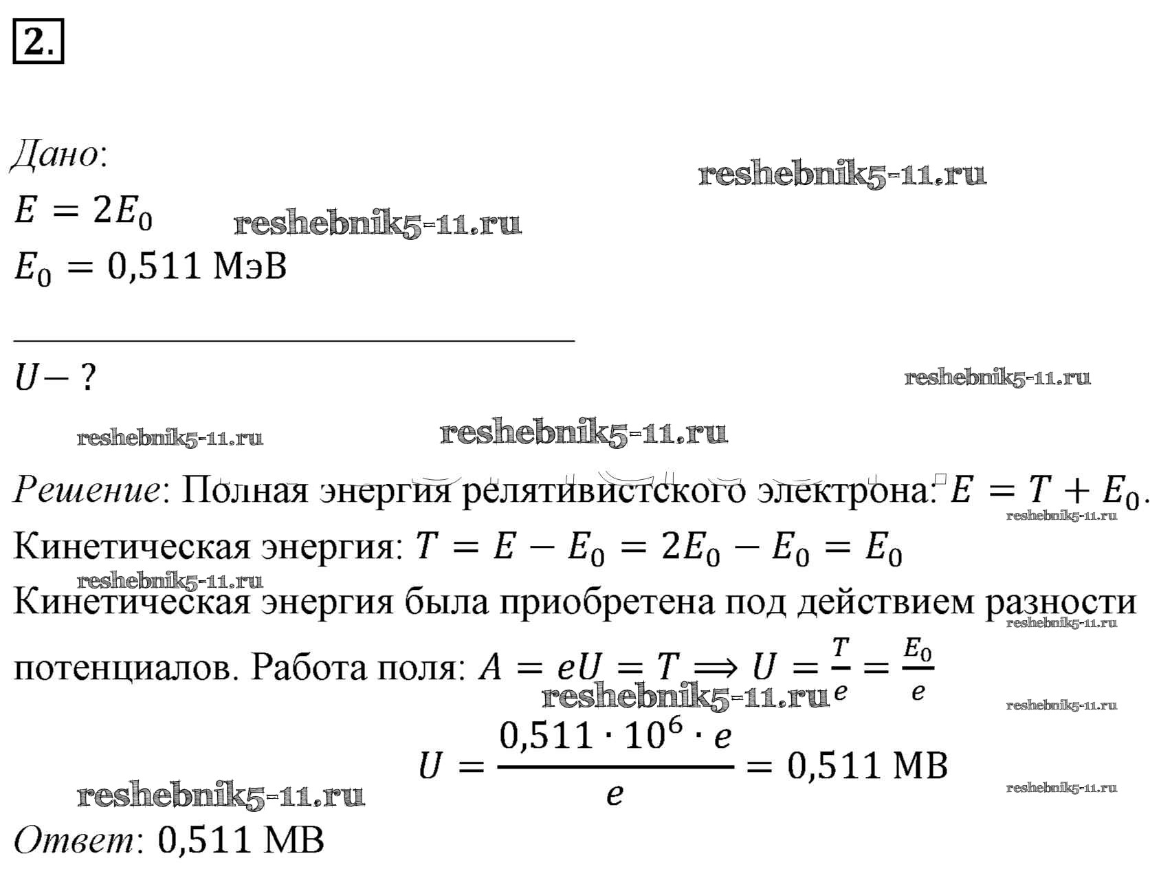 Готовая домашняя работа с ответами по Физике за 11 класс Мякишев, Буховцев, Чаругин, Николаева, Парфеньтьева Учебник Базовый уровень Просвещение 2018 ФГОС - Задачи для самостоятельного решения 2