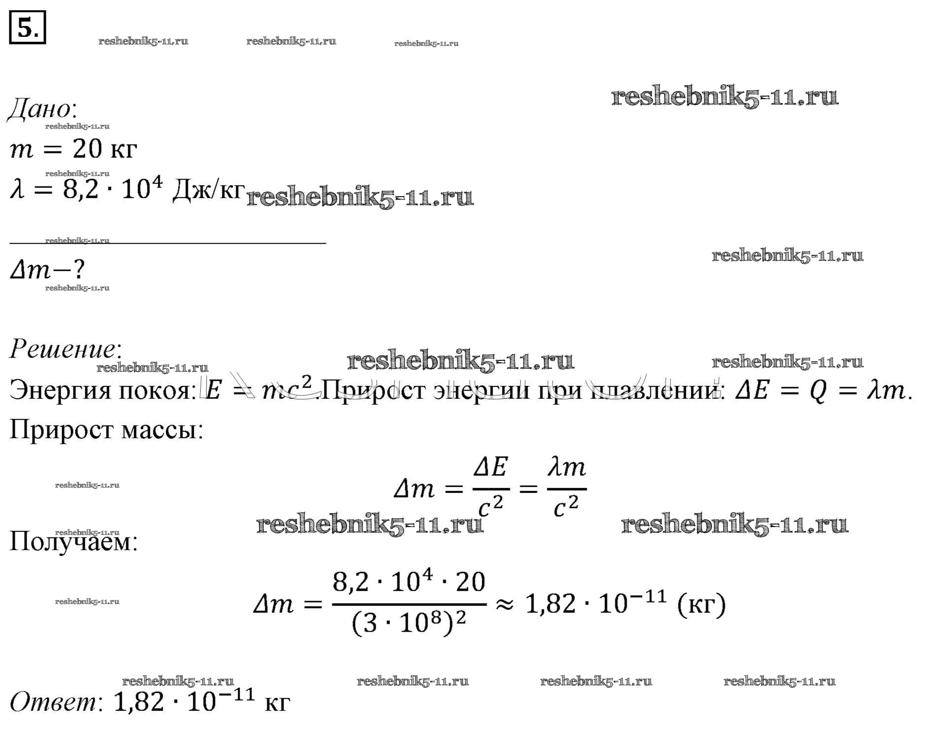 Готовая домашняя работа с ответами по Физике за 11 класс Мякишев, Буховцев, Чаругин, Николаева, Парфеньтьева Учебник Базовый уровень Просвещение 2018 ФГОС - Задачи для самостоятельного решения 5