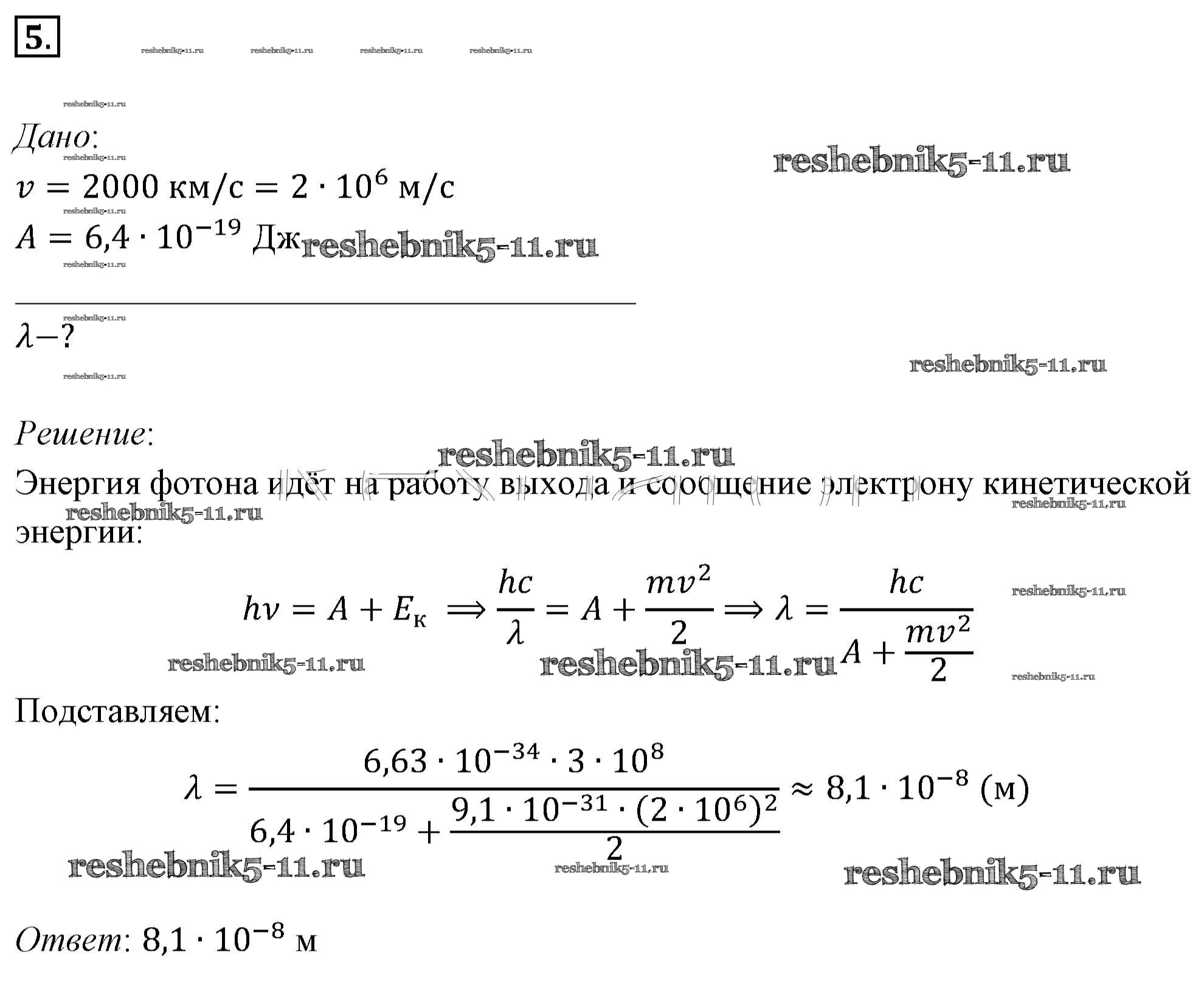 Готовая домашняя работа с ответами по Физике за 11 класс Мякишев, Буховцев, Чаругин, Николаева, Парфеньтьева Учебник Базовый уровень Просвещение 2018 ФГОС - Задачи для самостоятельного решения 5