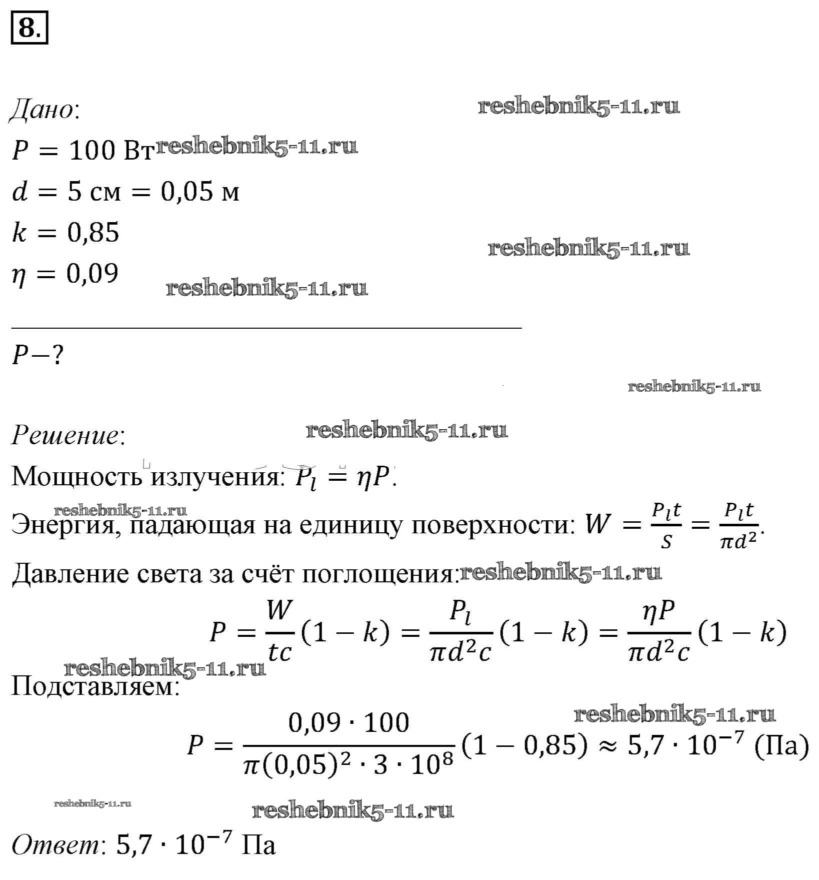 Готовая домашняя работа с ответами по Физике за 11 класс Мякишев, Буховцев, Чаругин, Николаева, Парфеньтьева Учебник Базовый уровень Просвещение 2018 ФГОС - Задачи для самостоятельного решения 8