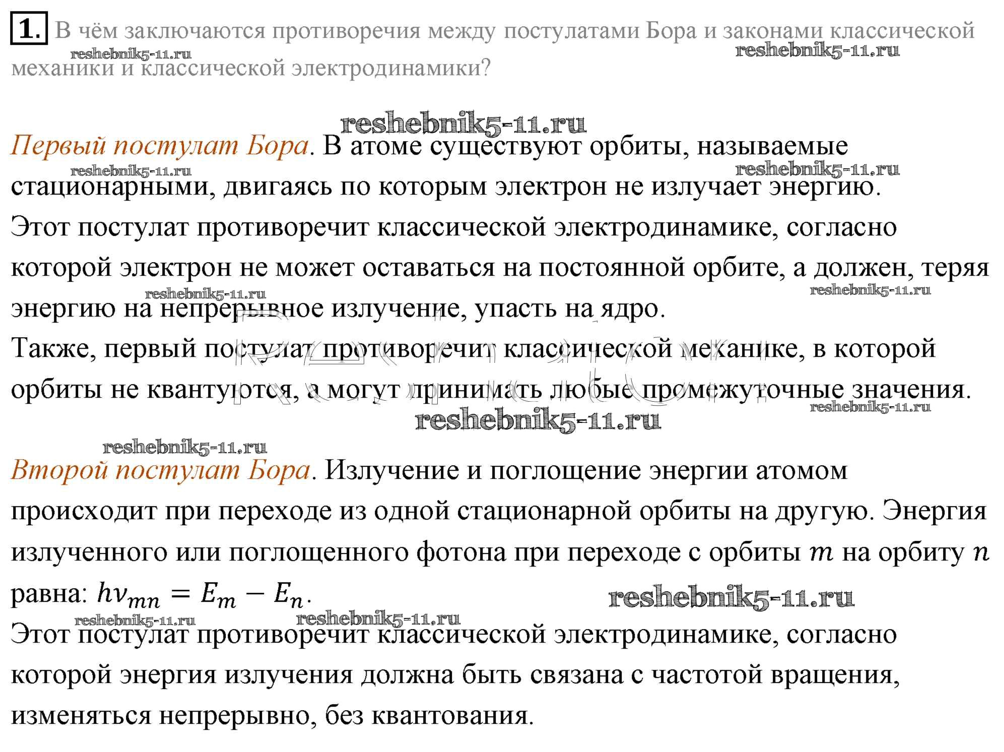 Готовая домашняя работа с ответами по Физике за 11 класс Мякишев, Буховцев, Чаругин, Николаева, Парфеньтьева Учебник Базовый уровень Просвещение 2018 ФГОС - Вопросы к параграфу 1