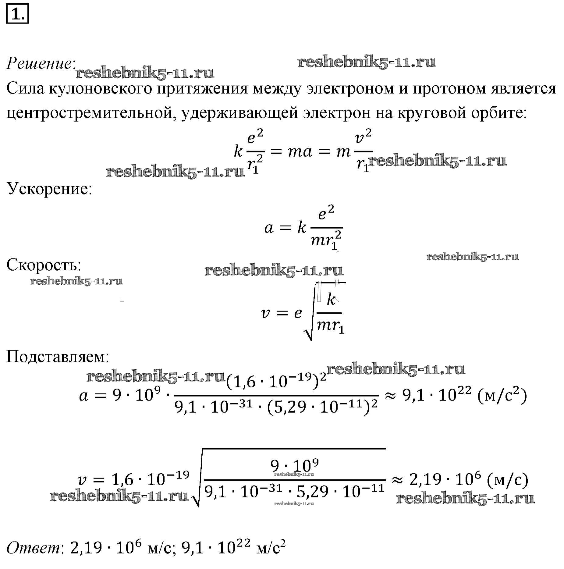 Готовая домашняя работа с ответами по Физике за 11 класс Мякишев, Буховцев, Чаругин, Николаева, Парфеньтьева Учебник Базовый уровень Просвещение 2018 ФГОС - Задачи для самостоятельного решения 1