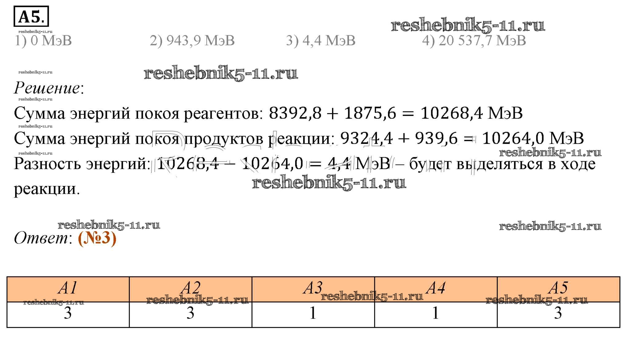 Готовая домашняя работа с ответами по Физике за 11 класс Мякишев, Буховцев, Чаругин, Николаева, Парфеньтьева Учебник Базовый уровень Просвещение 2018 ФГОС - Задания ЕГЭ 5