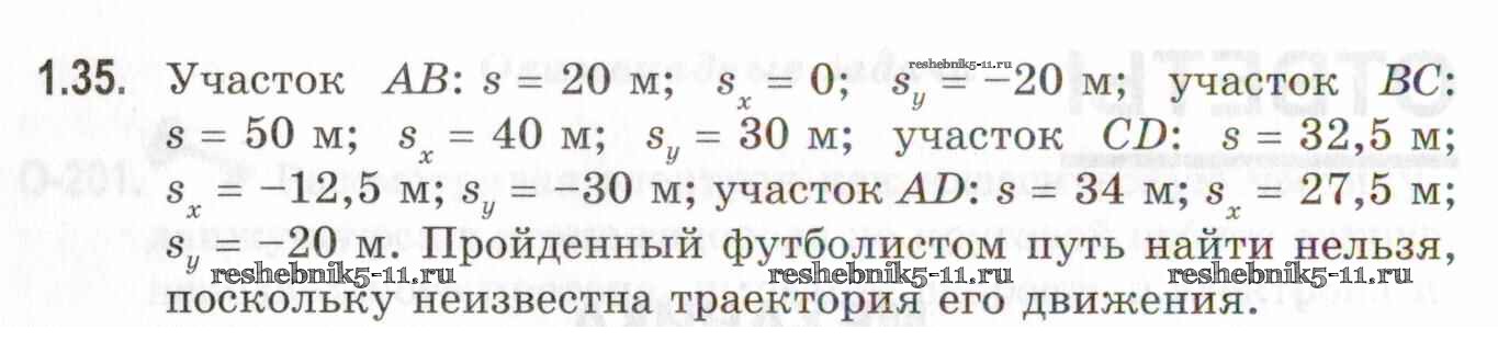 Готовая домашняя работа с ответами по Физике за 10, 11 класс Кирик, Генденштейн, Гельфгат Задачник Профильный уровень Илекса 2020 - 1. Материальная точка. Система отсчета. Путь и перемещение 1.35