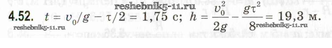 Готовая домашняя работа с ответами по Физике за 10, 11 класс Кирик, Генденштейн, Гельфгат Задачник Профильный уровень Илекса 2020 - 4. Свободное падение. Движение тела, брошенного вертикально вверх или под углом к горизонту 4.52