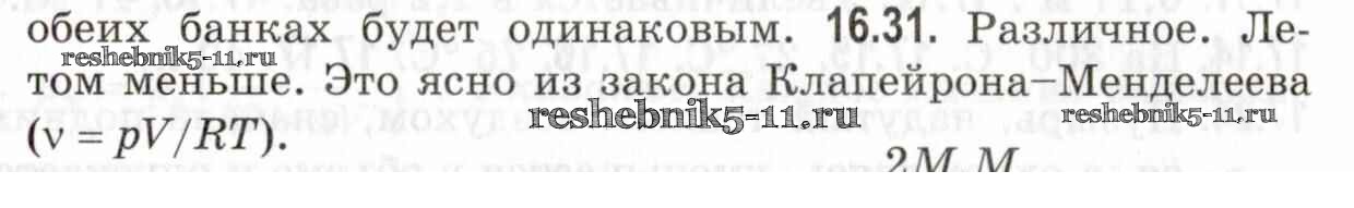Готовая домашняя работа с ответами по Физике за 10, 11 класс Кирик, Генденштейн, Гельфгат Задачник Профильный уровень Илекса 2020 - 16. Уравнение состояния идеального газа 16.31