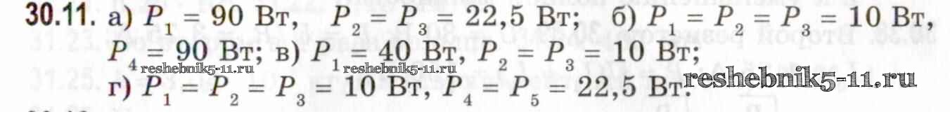 Готовая домашняя работа с ответами по Физике за 10, 11 класс Кирик, Генденштейн, Гельфгат Задачник Профильный уровень Илекса 2020 - 30. Работа и мощность тока. Закон Джоуля-Ленца 30.11
