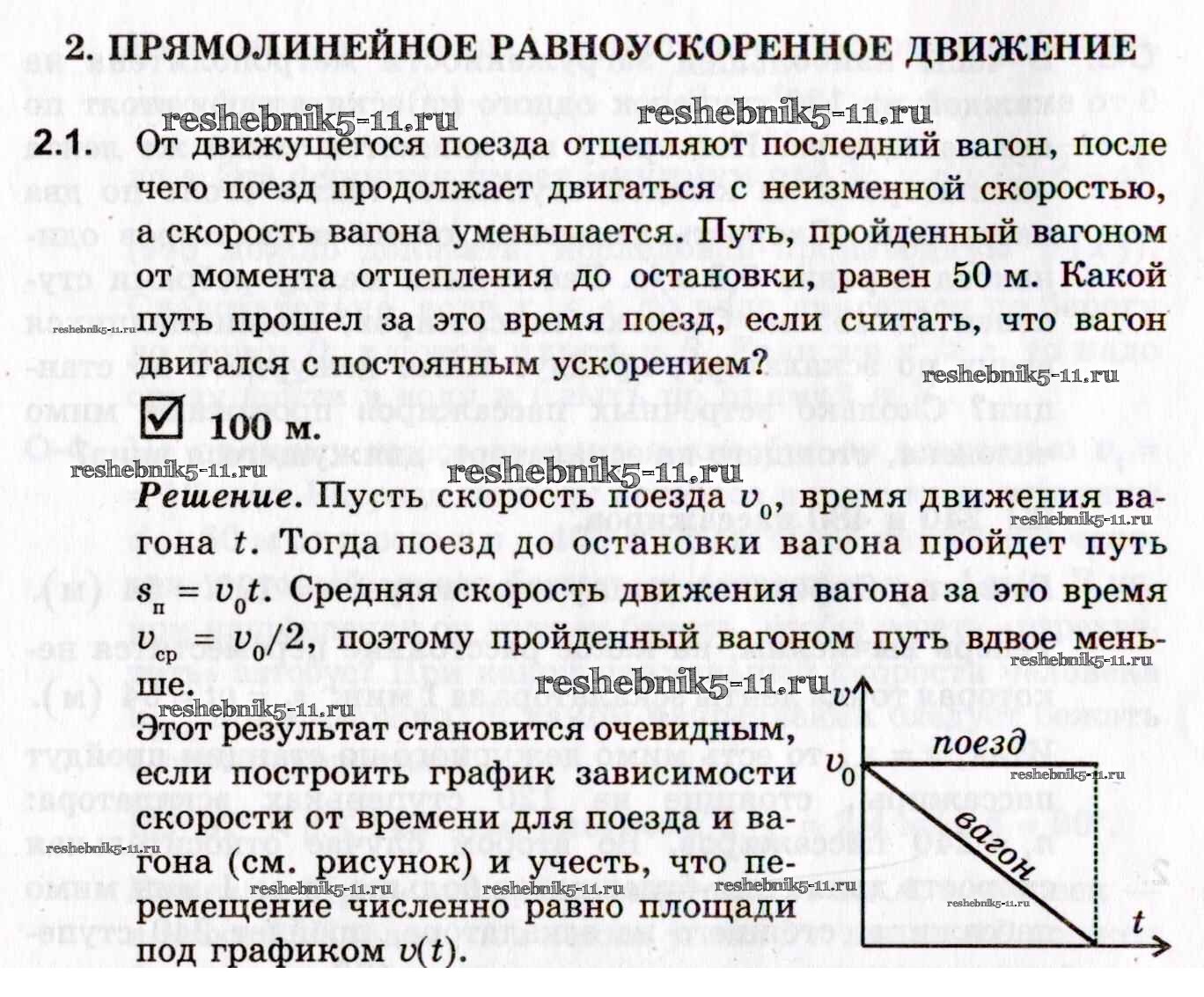 Готовая домашняя работа с ответами по Физике за 10, 11 класс Гельфгат, Генденштейн, Кирик Задачник Профильный уровень Илекса 2021 - 2. Прямолинейное равноускоренное движение 2.1