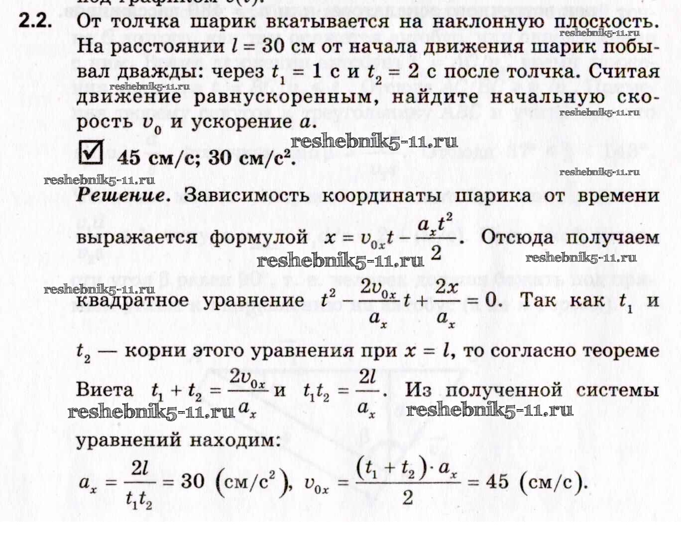 Готовая домашняя работа с ответами по Физике за 10, 11 класс Гельфгат, Генденштейн, Кирик Задачник Профильный уровень Илекса 2021 - 2. Прямолинейное равноускоренное движение 2.2