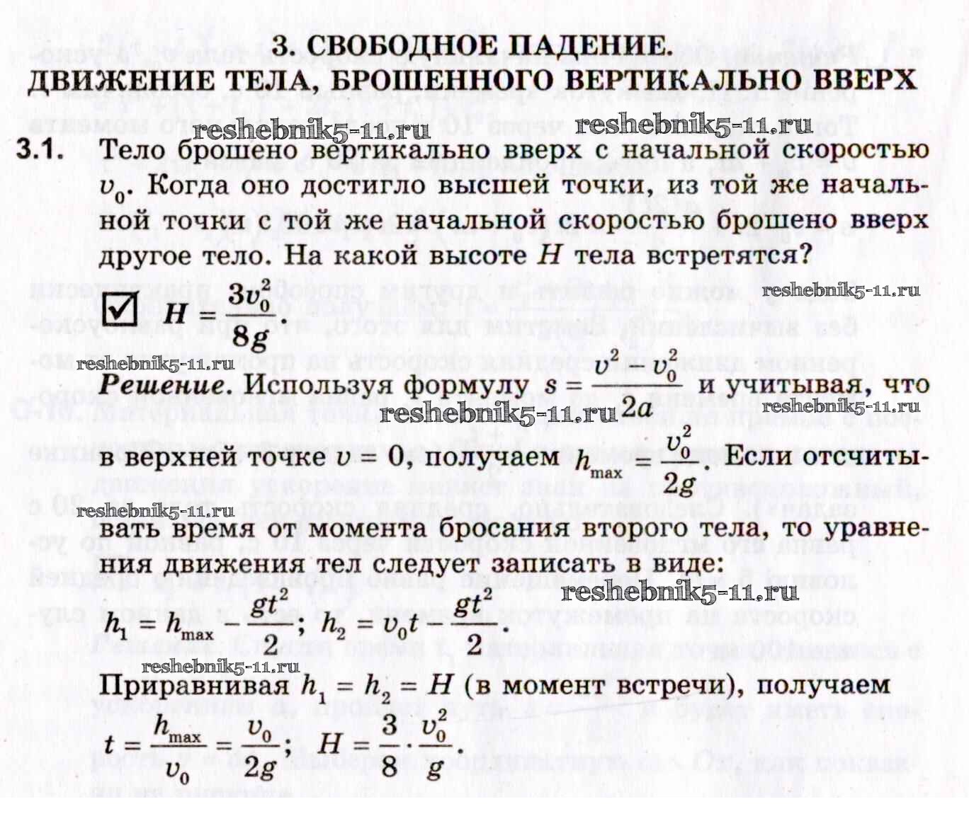 Готовая домашняя работа с ответами по Физике за 10, 11 класс Гельфгат, Генденштейн, Кирик Задачник Профильный уровень Илекса 2021 - 3. Свободное падение. Движение тела, брошенного вертикально вверх 3.1