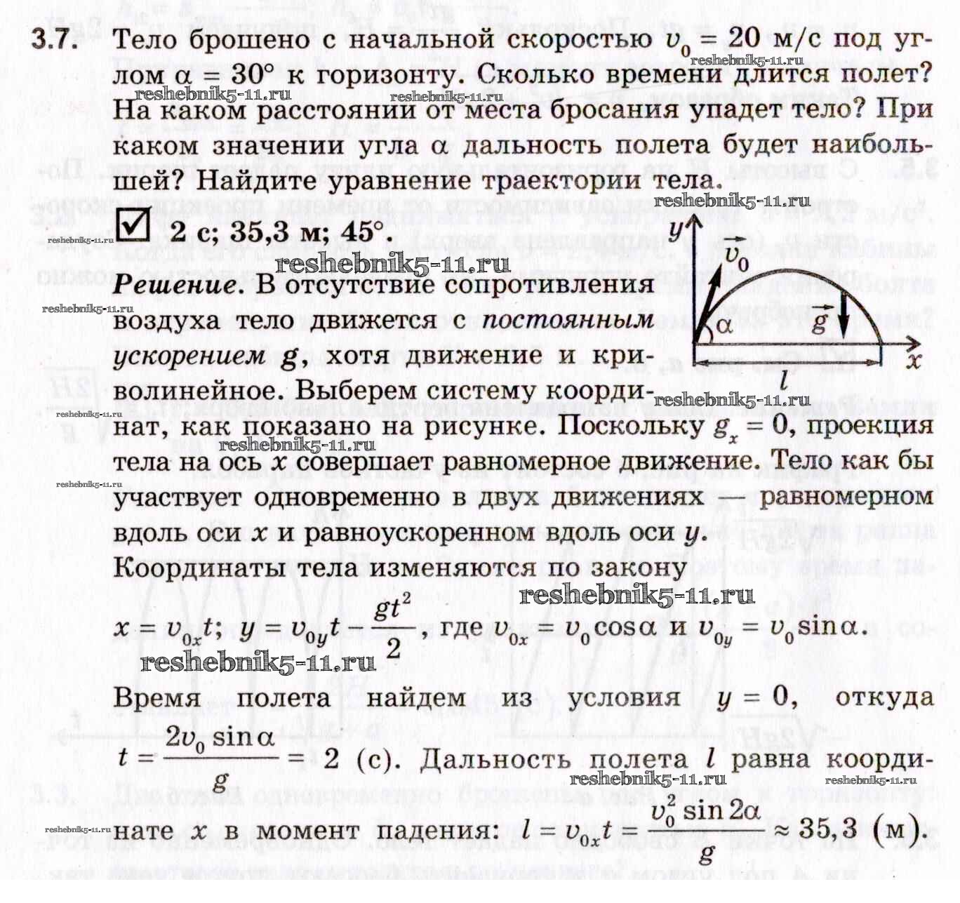 Готовая домашняя работа с ответами по Физике за 10, 11 класс Гельфгат, Генденштейн, Кирик Задачник Профильный уровень Илекса 2021 - 3. Свободное падение. Движение тела, брошенного вертикально вверх 3.7