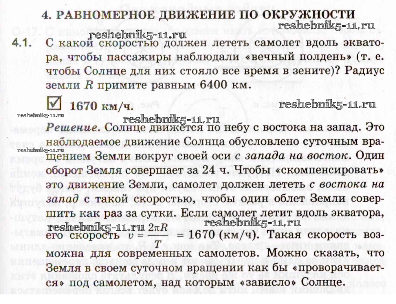 Готовая домашняя работа с ответами по Физике за 10, 11 класс Гельфгат, Генденштейн, Кирик Задачник Профильный уровень Илекса 2021 - 4. Равномерное движение по окружности 4.1