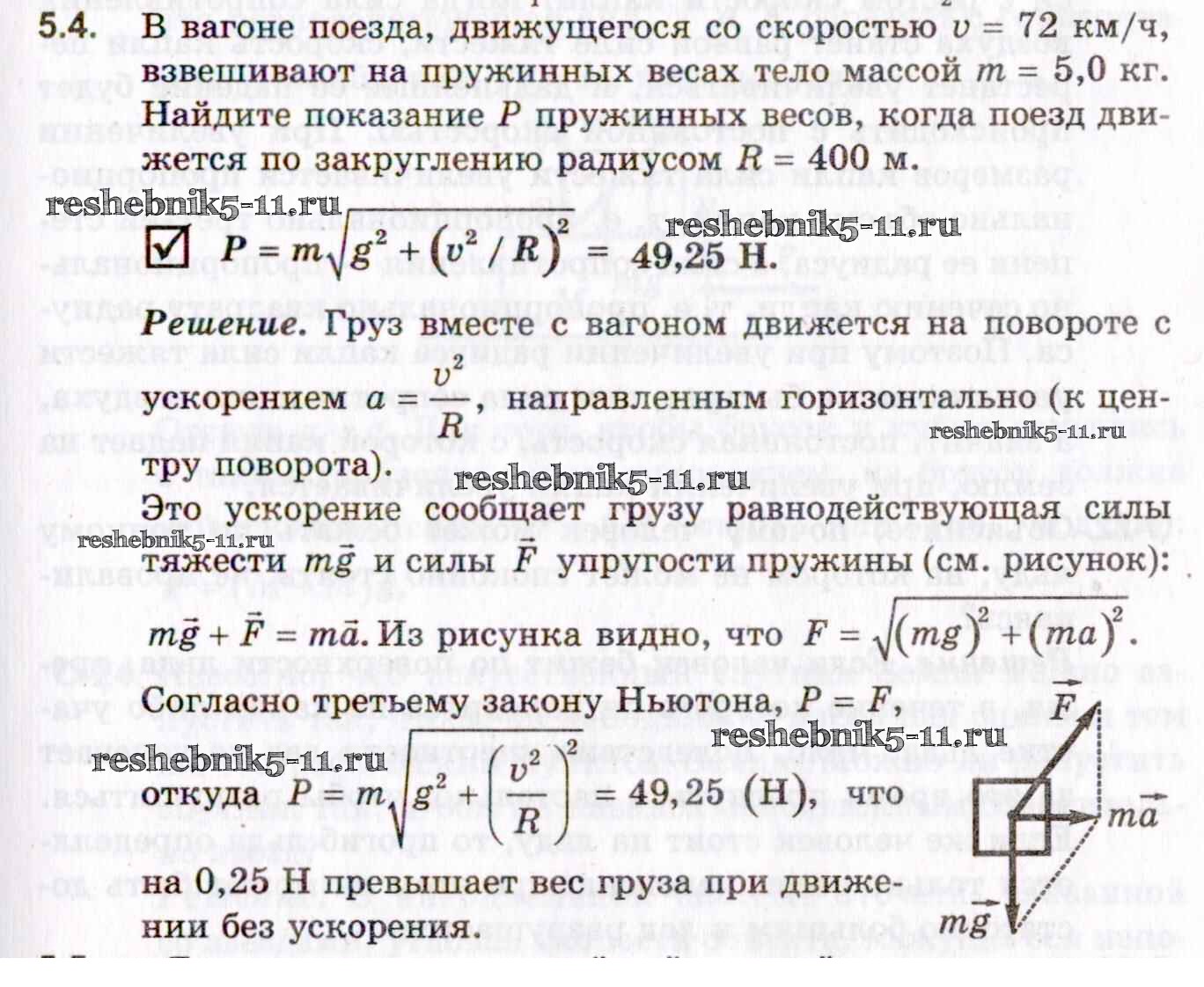 Готовая домашняя работа с ответами по Физике за 10, 11 класс Гельфгат, Генденштейн, Кирик Задачник Профильный уровень Илекса 2021 - 5. Законы Ньютона 5.4