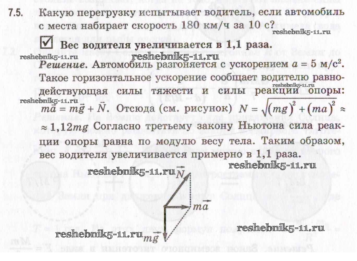 Готовая домашняя работа с ответами по Физике за 10, 11 класс Гельфгат, Генденштейн, Кирик Задачник Профильный уровень Илекса 2021 - 7. Закон всемирного тяготения. Сила тяжести и вес тела 7.5